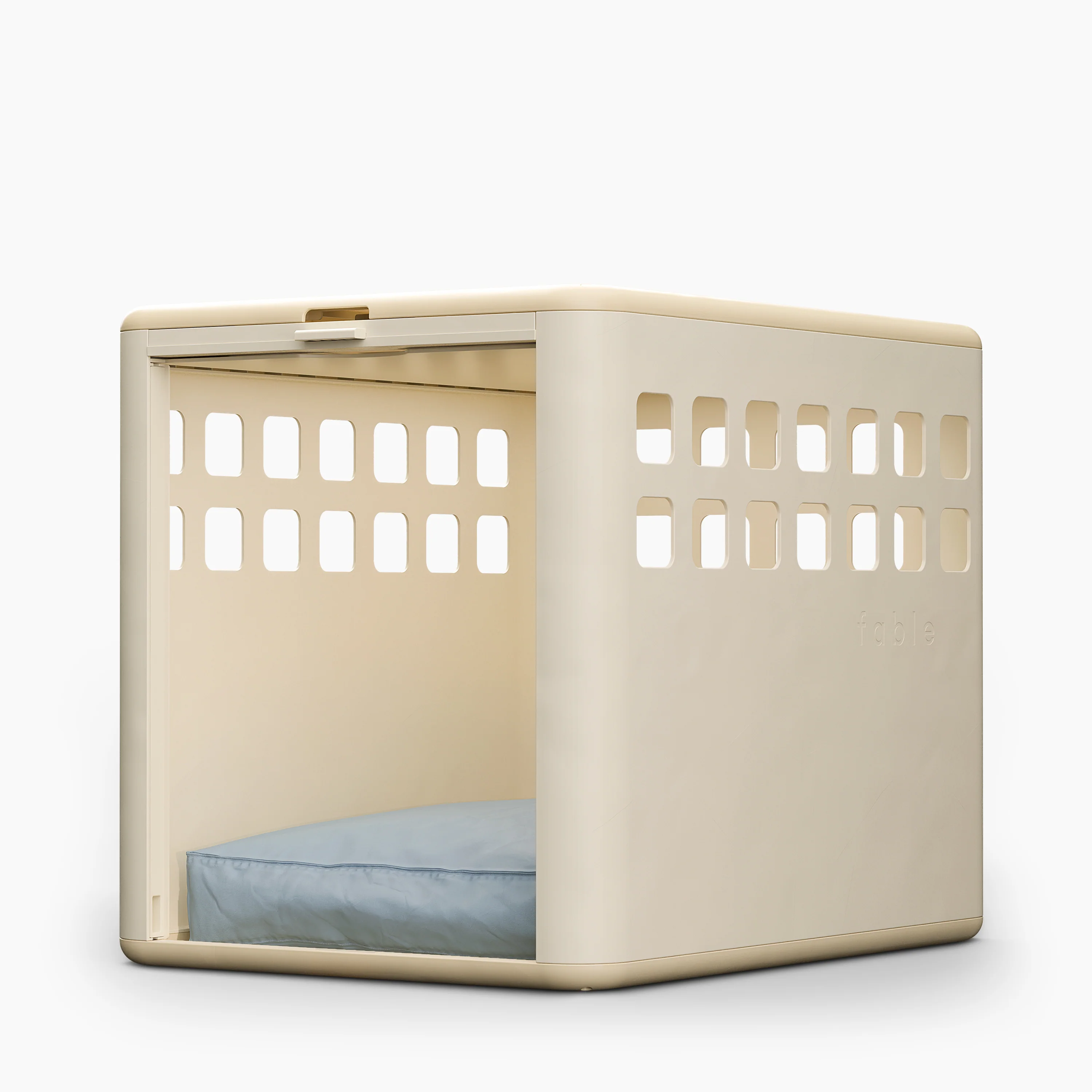 Versatile security and style - a lightweight, modern crate with our slimmest profile yet. The Essential Crate brings Fable’s signature design DNA to a durable, pet-safe, and accessible form. Thoughtfully crafted for comfort and style, it doubles as a sleek side table while creating a calm, den-like space for your pet to rest and recharge. With generous airflow, easy-to-clean materials, and a timeless look, the Essential Crate delivers on practical beauty you and your pet will love.Â